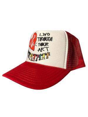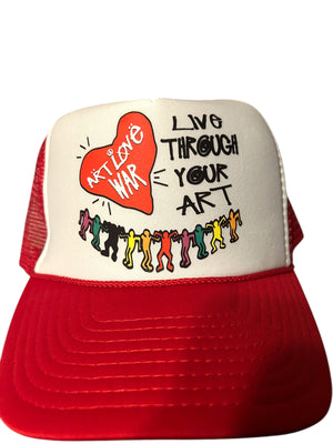 Product “Live Through Your Art” Trucker Hat - https://artlovewar.com/products/live-through-your-art-trucker-hat